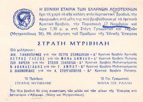 ΠΡΟΓΡΑΜΜΑ ΕΚΔΗΛΩΣΕΩΝ ΕΘΝΙΚΗΣ ΕΤΑΙΡΕΙΑΣ ΤΩΝ ΕΛΛΗΝΩΝ ΛΟΓΟΤΕΧΝΩΝ
