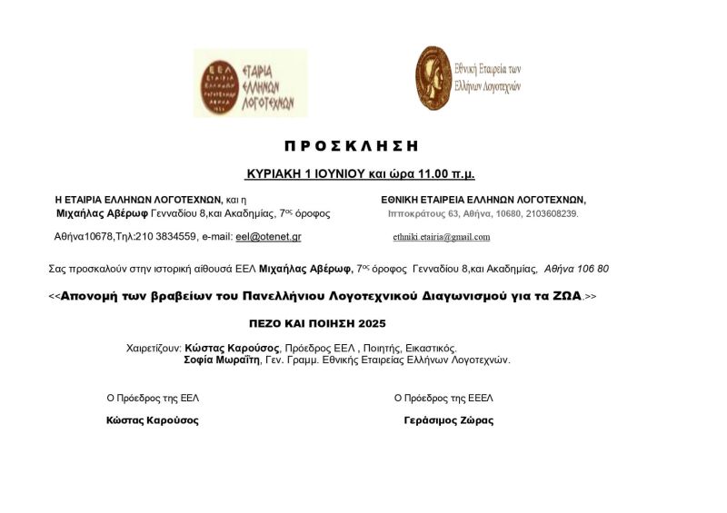 ΑΠΟΤΕΛΕΣΜΑΤΑ 2ΟΥ ΠΑΝΕΛΛΗΝΙΟΥ ΛΟΓ. ΔΙΑΓΩΝΙΣΜΟΥ 2025 - ΚΛΗΡΟΔΟΤΗΜΑ ΜΙΧΑΗΛΑΣ ΑΒΕΡΩΦ - ΓΙΑ ΤΑ ΖΩΑ - ΔΙΗΓΗΜΑ KAI ΠΟΙΗΣΗ