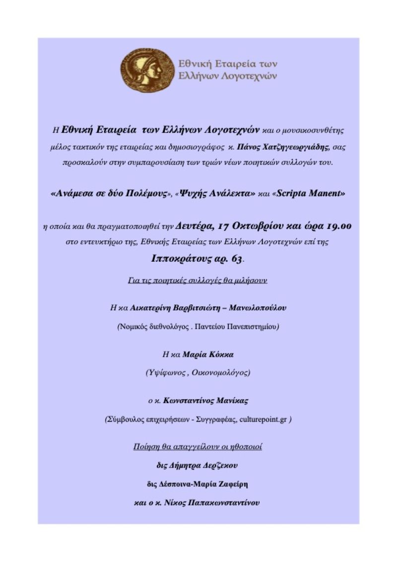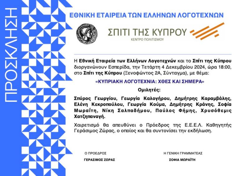 Λογοτεχνικό Καφενείο στο Εντευκτήριο της Ε.Ε.Ε.Λ