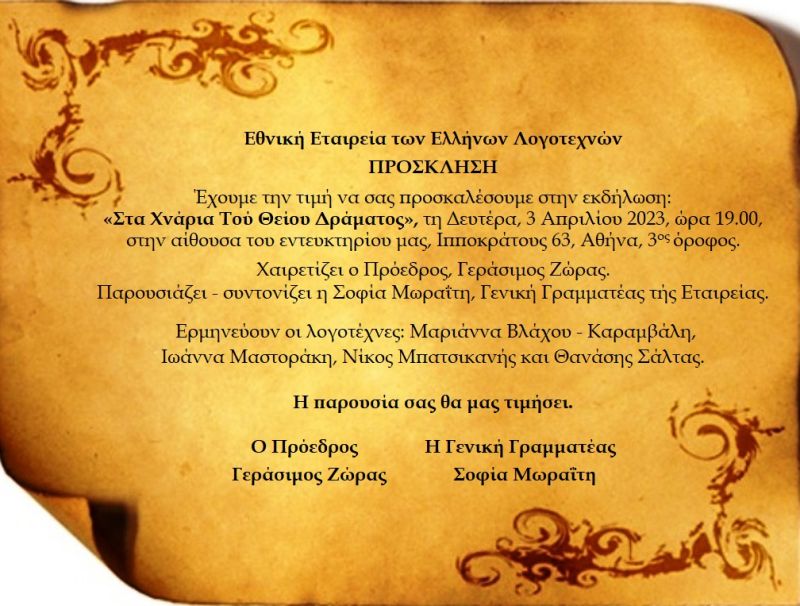 Πρόγραμμα Εκδήλωσης «ΣΤΑ ΧΝΑΡΙΑ ΤΟΥ ΘΕΙΟΥ ΔΡΑΜΑΤΟΣ»