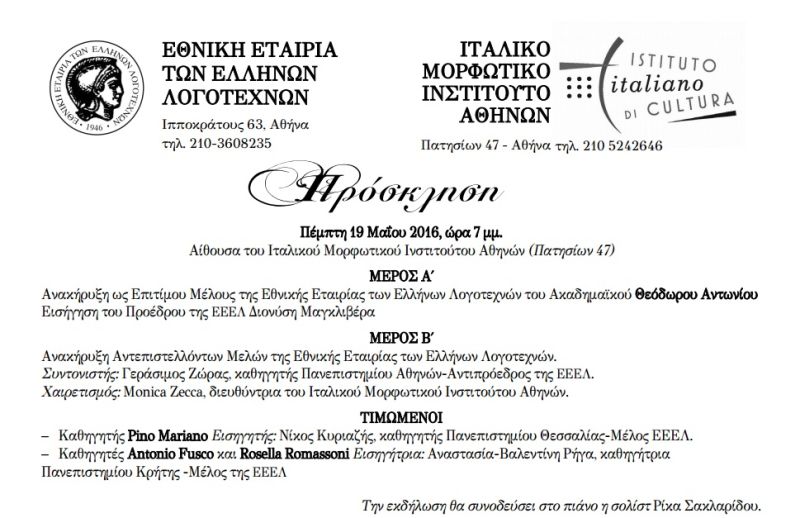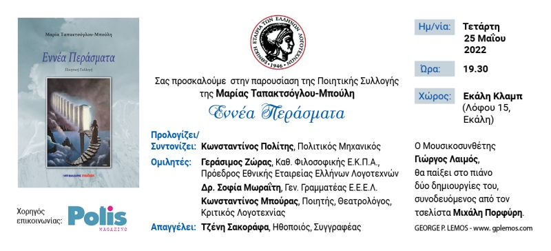 28 Φεβρουαρίου 2020 Παρουσίαση του ποιητικού έργου του εικαστικού λογοτέχνη και μέλους της ετσιρείας μας, Κώστα Ευαγγελάτου Περισσότερα