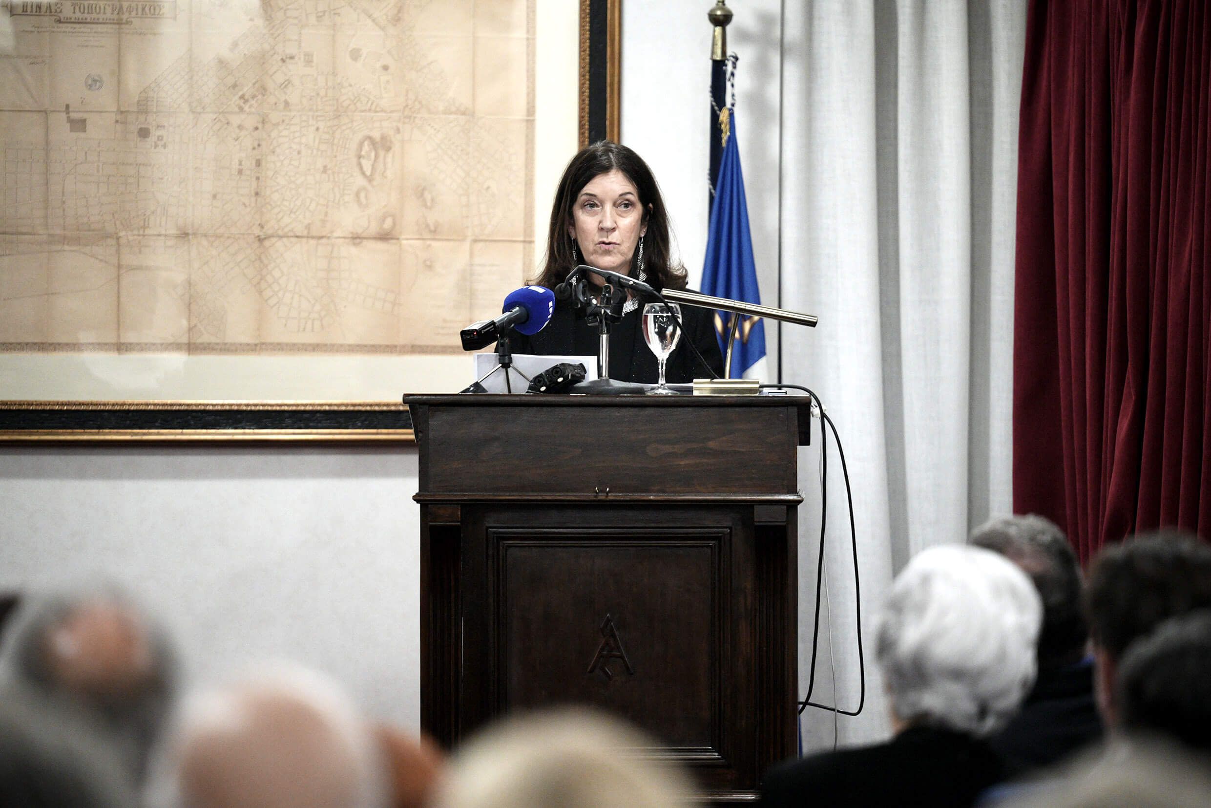 Θα εκφράσω πρώτα τα θερμά συγχαρητήριά μου προς την υπέροχη και πολυτιμημένη συγγραφέα , κα. Victoria Hislop, για την αναγόρευσή της σε Επίτιμο Μέλος τής Εταιρείας μας και να τής ευχηθῶ το «Καλώς ήρθες».