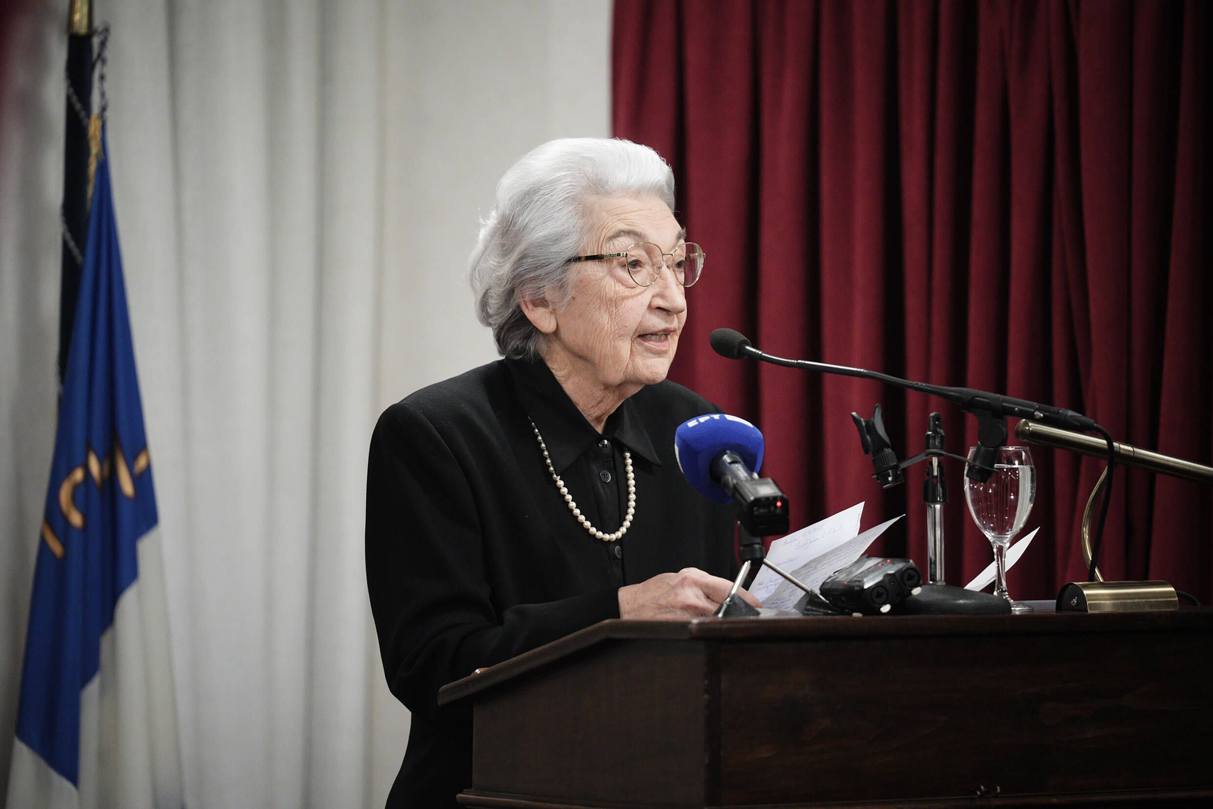 Στην ίδια αυτή μνήμη είναι βαθιά χαραγμένη και η παρουσία των ακριβών γονιών μου, των δασκάλων μου και πολλών αδελφικών φίλων που έχουν φύγει από τη ζωή , αλλά προς τους οποίους θέλω απόψε, από αυτό το βήμα, να ψιθυρίσω ότι δεν θα ξεχάσω ποτέ το πόσα πολλά τους οφείλω.