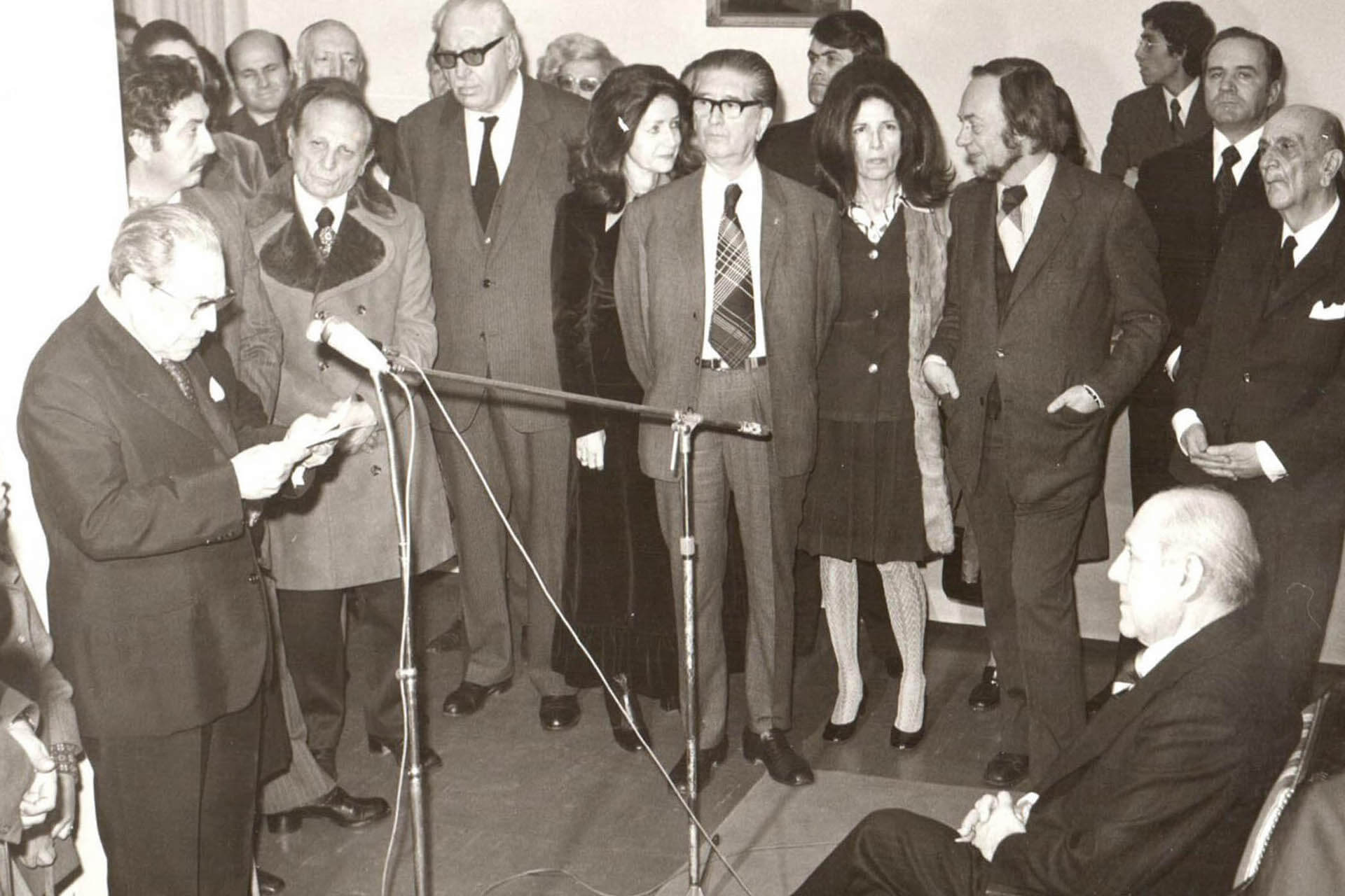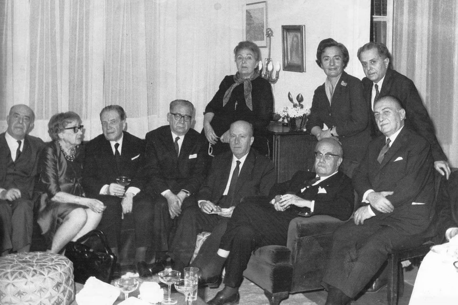 Στις 6 Απριλίου 1967, μετά τις αρχαιρεσίες, ο Στρατής Μυριβήλης λόγω μακράς άσθενείας εξέφρασε την επιθυμία του να μην συνεχίσει να ασκεί τα καθήκοντα του Προέδρου, αλλά να μετέχει ως σύμβουλος. Έτσι, συγκροτήθηκε το Διοικητικό Συμβούλιο ως εξής: Πρόεδρος: Πέτρος Χάρης, Αντιπρόεδροι: Ελένη Ουράνη και Σπύρος Παναγιωτόπουλος, Γεν. Γραμματεύς: Μαρία Π. Ράλλη , Ειδ. Γραμματεύς: Μηνάς Δημάκης, Ταμίας: Αλκιβιάδης Γιαννόπουλος, Έφορος: Γαλάτεια Σαράντη, Κοσμήτωρ: Πέτρος Γλέζος, Σύμβουλοι: Στρατής Μυριβήλης, Γιάννης Χατζίνης, Απόστολος Σαχίνης. Αργότερα ο Σπύρος Παναγιωτόπουλος παραιτήθηκε από τη θέση του Αντιπροέδρου και αντικαταστάθηκε από τον Γιάννη Χατζίνη. Στο μεταξύ η χώρα εισήλθε στην επτάχρονη δικτατορία, με δυσμενή αποτελέσματα και στον χώρο των Γραμμάτων. Αξίζει να αναφερθεί ότι ο Πρόεδρος της Εταιρίας Πέτρος Χάρης και η Γεν. Γραμματεύς Μαρία Π. Ράλλη επισκέφθηκαν τον Υπουργό Προεδρίας Κυβερνήσεως, ζητώντας του να μάθουν τους λόγους της σύλληψης του μέλους της Εταιρίας Σπύρου Πλασκοβίτη (1967).